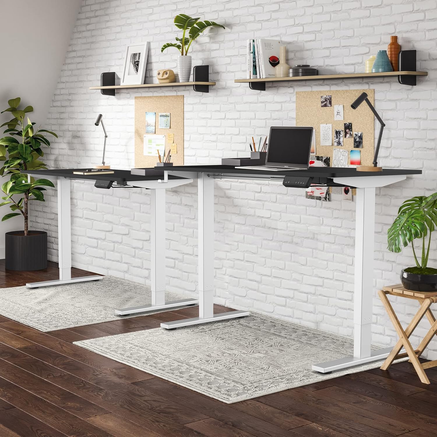 - ELECTRIC HEIGHT ADJUSTMENT- Electric sit-stand desk with motor lift system, lifts and lowers quickly, smoothly and quietly to any height within large height range from 71cm/28″ to 115cm/45″ at a speed of 1″/second with whisper quiet operation.