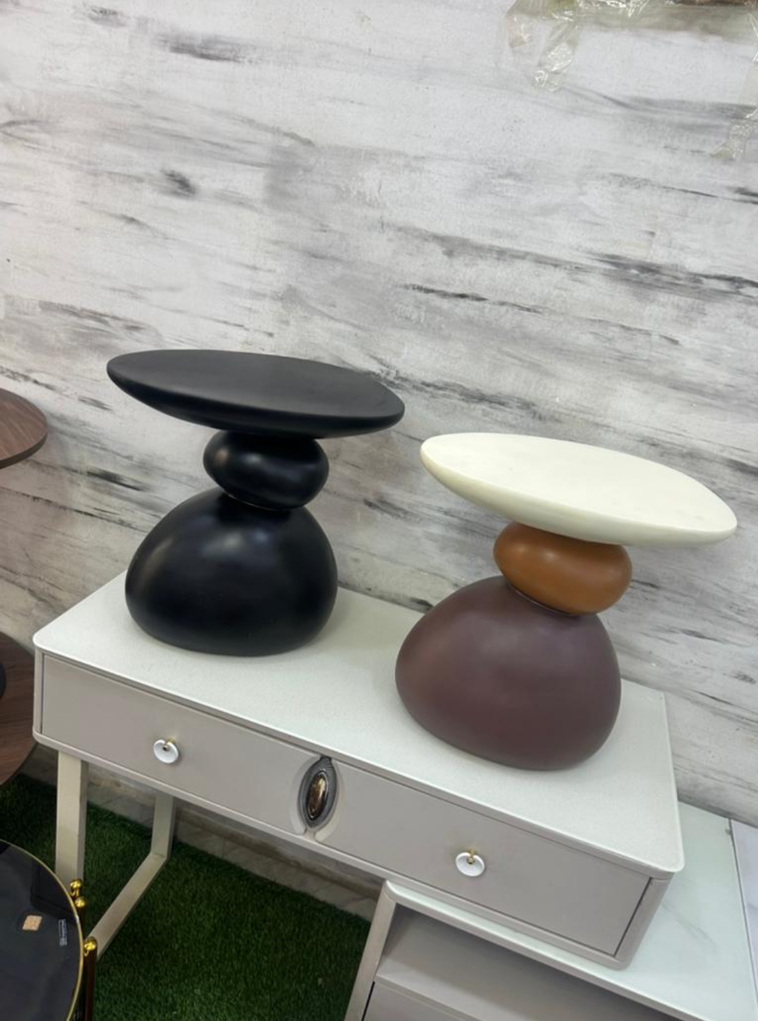 This sculptural pedestal accent side table stands out with its bold, artistic form and smooth circular tabletop. Designed to act as a focal point, it blends functionality with statement styling. Its solid, sculpted base creates a striking contrast against soft furnishings, making it an ideal addition to refined living spaces.
